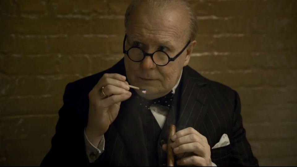 Una ambientación cuidada hasta en los más mínimos detalles, una fotografía espléndida de Bruno Delbonnel, pictórica y maniesrista, y un gran actor en estado de gracia y firme candidato al Oscar, Gary Oldman, al que nadie vería encarnando al rubicundo y obeso inquilino de Down Street en 1940, son las principales bazas de este film intimista y muy dialogado de principio a fin queque descubre la faceta más humana del personaje. Gary Oldman, como Bruno Ganz en El hundimiento con respecto a Hitler, es Churchill; se engorda, se dota de papada; desayuna huevos con bacon en la cama; anda descalzo por su casa, gruñe con hasta frecuencia; se amansa ante su esposa Clementine (Kristin Scott Thomas) que lo llama mi cerdito por su aspecto sonrosado; dicta a su joven secretaria Elizabeth Layton (Lily James), a la que trata al principio de forma despótica, desde la bañera; se pelea con sus mortales enemigos Neville Chamberlain (Ronald Pickup) y el Vizconde Halifax (Stephen Dillane), que mantiene en el gobierno precisamente para controlarlos; y encuentra apoyo en los momentos de duda en el Rey Jorge VI (encarnado por el australiano Ben Mendelsohn cuyo parecido con el monarca es extraordinario).