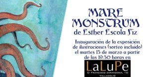 El próximo martes 13 de marzo, a las 19,30 horas, se inaugura en el Bar La Lupe, C/ Francisco Zarandona, 10, de Valladolid la exposición Mare Monstrum de la ilustradora Esther Escola Fiz.