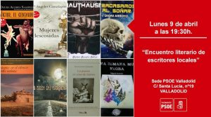 El próximo lunes 9 de abril, a las 19:30, tendrá lugar en la Sede del PSOE en Valladolid (C/ Santa Lucía, 19) un encuentro literario con escritores locales.