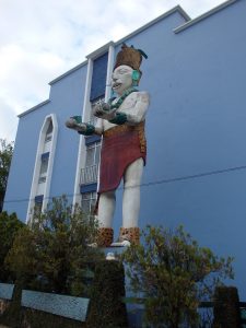 Al cruzar el río, se ven otras pirámides más allá de los árboles. Se sube a ellas por escalones altísimos que agotan a uno. Se encuentra a un dios que fuma y a un dios que con el gesto te manda callarte. Se ven la Pirámide de la Cruz y la Pirámide de la Cruz Foliada y la Pirámide del Sol. Y entre los árboles te venden artesanías mayas ancestrales, te ofrecen muñecos con el sonido de los jaguares, te ofrecen ocarinas mágicas. Y uno se maravilla ante esos árboles de tronco rojo que llaman “indio en cueros”, pero que yo llamo “árbol de sangre”.