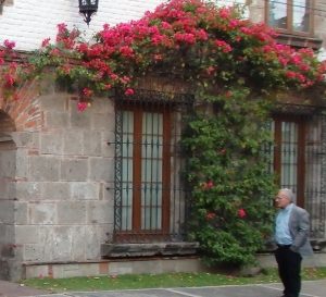 Un árbol gigantesco extiende sus brazos a la izquierda, como para abrazar con sus ramas la casa o entrar en conversación febril con ella. Y más jarrones se esconden en lo alto del muro, jarrones de color cárdeno, de color de carne o de tierra, hechos de carne del tiempo como sus novelas. Gabo, a diferencia de su coronel, sí que consiguió que le escribieran, que le escucharan en todas partes. Y en la casa se nota la pasión de él y la reserva de su mujer , Mercedes Barcha que parece mirar por los visillos tras las ventanas con rejas. Su mujer fue un personaje novelesco, más misterioso y fascinante que los personajes de “Cien años de soledad” o “El amor en los tiempos del cólera” o los atrapados por el destino en “Crónica de una muerte anunciada”. Ella sola es una novela que apenas se ha escrito.