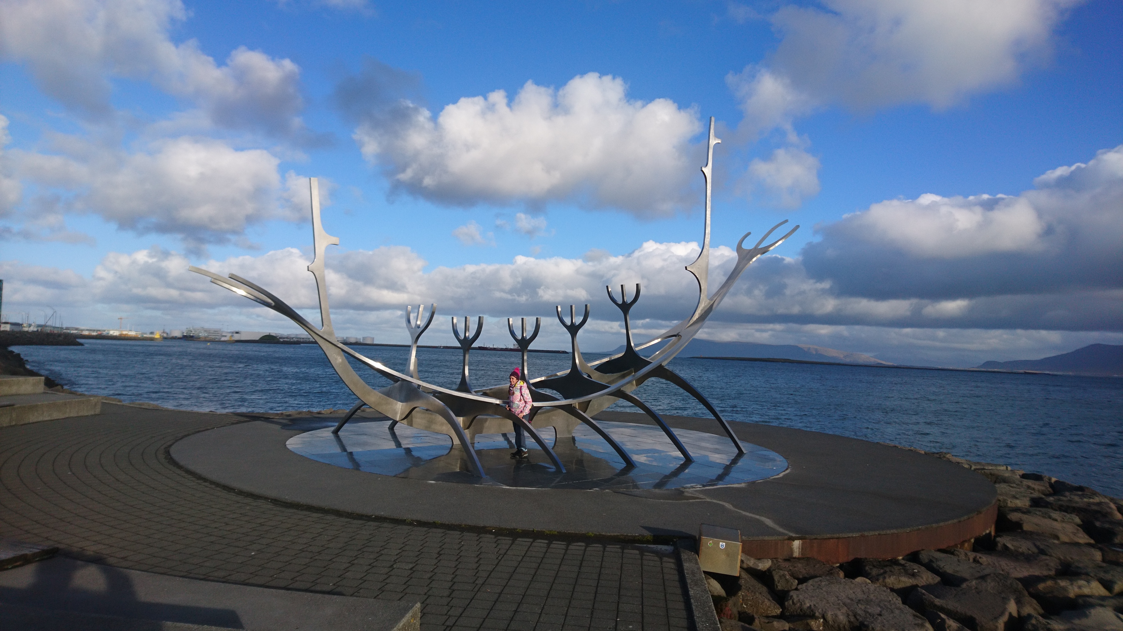A las 10 de la mañana hay gente por el paseo marítimo. Algunos van en bici, luchando a brazo partido contra el viento, otros corren. Una isla de viento, dictamina, cabizbajo, para embestirlo, mientras se le congelan las mejillas y se le hielan los ojos: hay que ponerse las gafas de sol. La mayor parte de la gente lucha contra el viento que sopla desde un mar cobrizo en donde nadan y vuelan diminutas gaviotas y jamás un humano se baña. Turistas chinos se hacen fotos y selfies ante la escultura de El viajero del sur, una moderna estructura metálica con forma de barco vikingo.