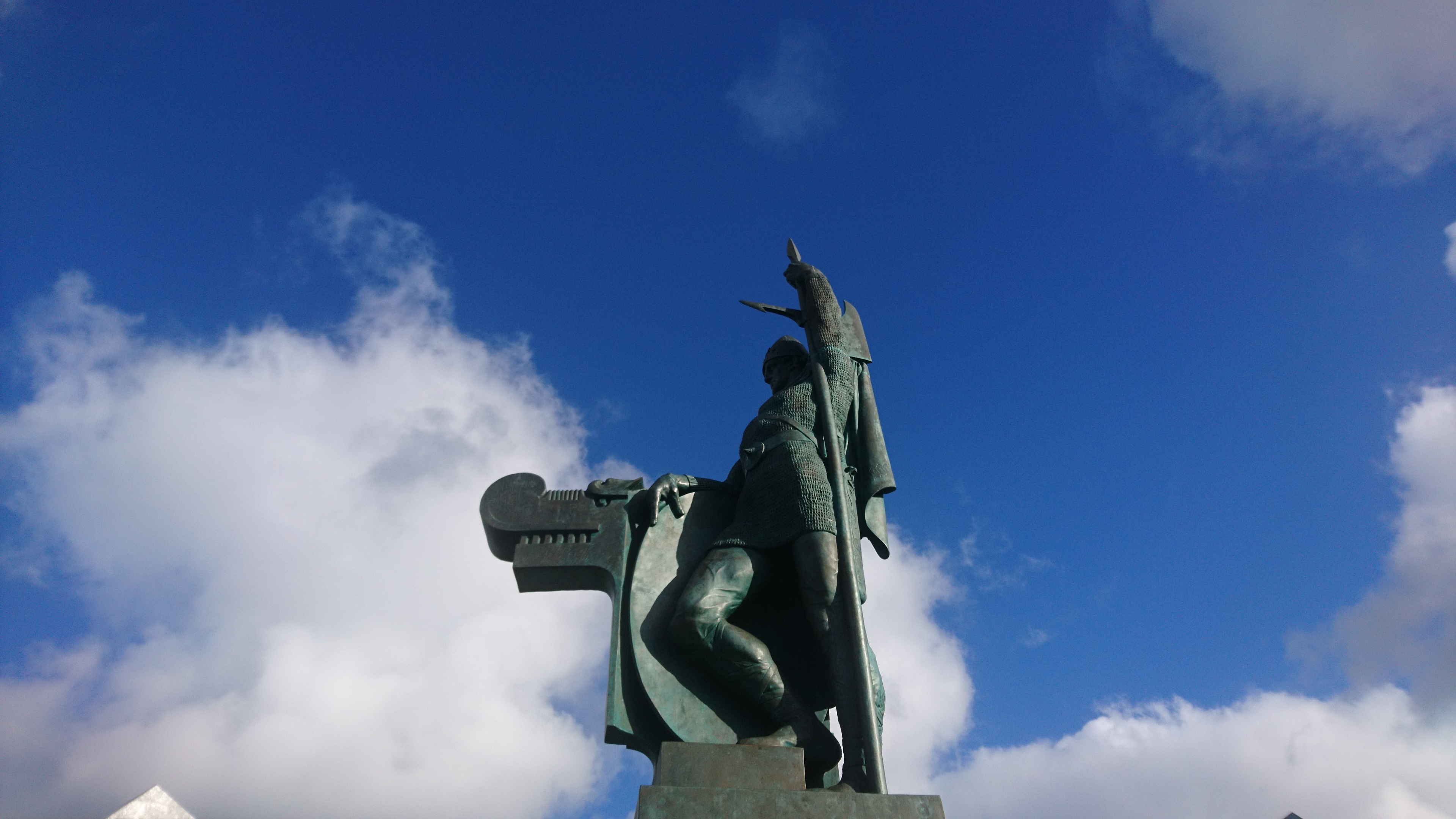 Con el buen gusto del helado en la boca trepa Frakkastigur arriba. La Hallgrimskirja, la catedral luterana que toma el nombre del poeta Hallgrímur Péturson, preside una plaza ajardinada en la que campa la efigie del vikingo noruego Ingólfur Arnarson, tipo imponente armado con un hacha, el que descubrió la bahía de los humos (eso quiere decir Reyjavick por el vapor de agua que surgía de sus aguas termales sulfurosas). Moderna (data de 1986) y austera, destaca por ser el edificio más alto del país y su original y aerodinámica fachada anterior que recuerda a un cohete espacial a punto de despegue. Prefiere el gótico y el románico, pero de esos estilos no hay un solo vestigio en la isla que apuesta por la modernidad arquitectónica. ¿Hay edificios históricos? No los va a encontrar en todo su periplo. La arquitectura histórica es su paisaje.