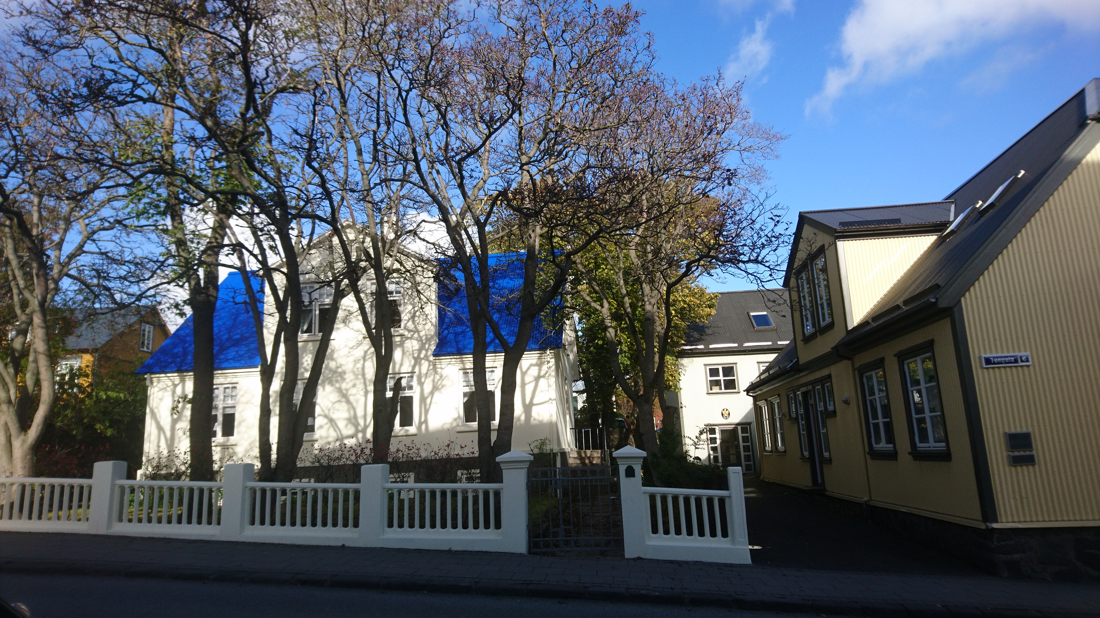 Mioborg es el centro de la ciudad, un buen número de calles de ligera ondulación y subidas suaves que siguen las lomas de la ciudad. Dos cosas le sorprenden a Abimael que no deberían. Ninguna casa tiene chimenea en un país muy próximo al Círculo Polar Ártico y con temperaturas que rondan los 20 o 30 bajo cero. No hacen falta y tampoco habría madera para alimentarlas: en la isla no hay más árboles que los de los parques de la capital, y, por otra parte, las fuentes termales volcánicas dan calor suficiente para las calefacciones. Los volcanes hacen que la factura eléctrica de los islandeses sea irrisoria. Lo que sigue siendo un misterio es por qué las fachadas de las casas están recubiertas de planchas onduladas metálicas iguales que los tejados, una especie de uralita, que embellecen sus moradores pintándolas de vivos colores. ¿Aísla del crudo frío invernal?