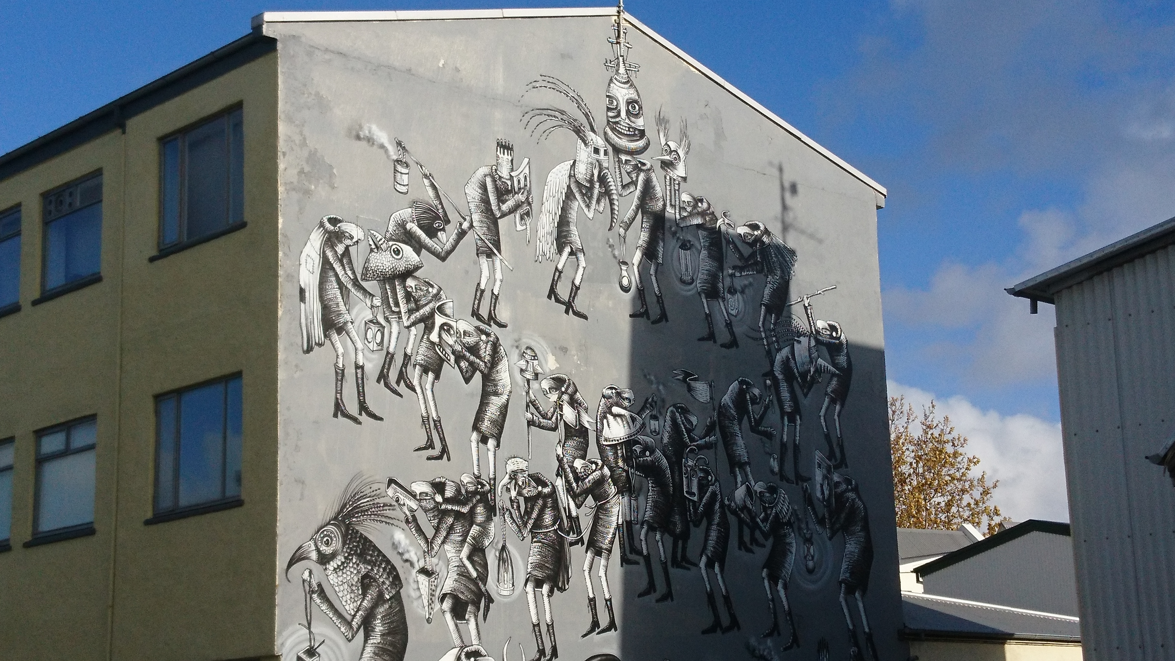 Los habitantes de Reyjavick tienen vena artística. Hay fachadas decoradas con murales que parecen salidos de la mente de Hyeronimus Bosch junto a náyades sumergidas en estanques. Una pastelería salpica con una lluvia de colores su fachada. Hay verdes esmeralda, rojos encendidos, amarillos en las casas de los barrios céntricos. Un urinario subterráneo, en el que la bandera pirata convive con la A de anarquía, es un templo de música punk. No hay futuro en el mundo, pero si en Islandia, la isla de hielo. El teatro nacional tiene los aires modernistas del Radio Music Hall neoyorquino. A un restaurante de piedra volcánica, el Rok, le crece hierba en el tejado. Si se tumbara en el parque a Abimael lo cubriría una espesa capa de musgo.