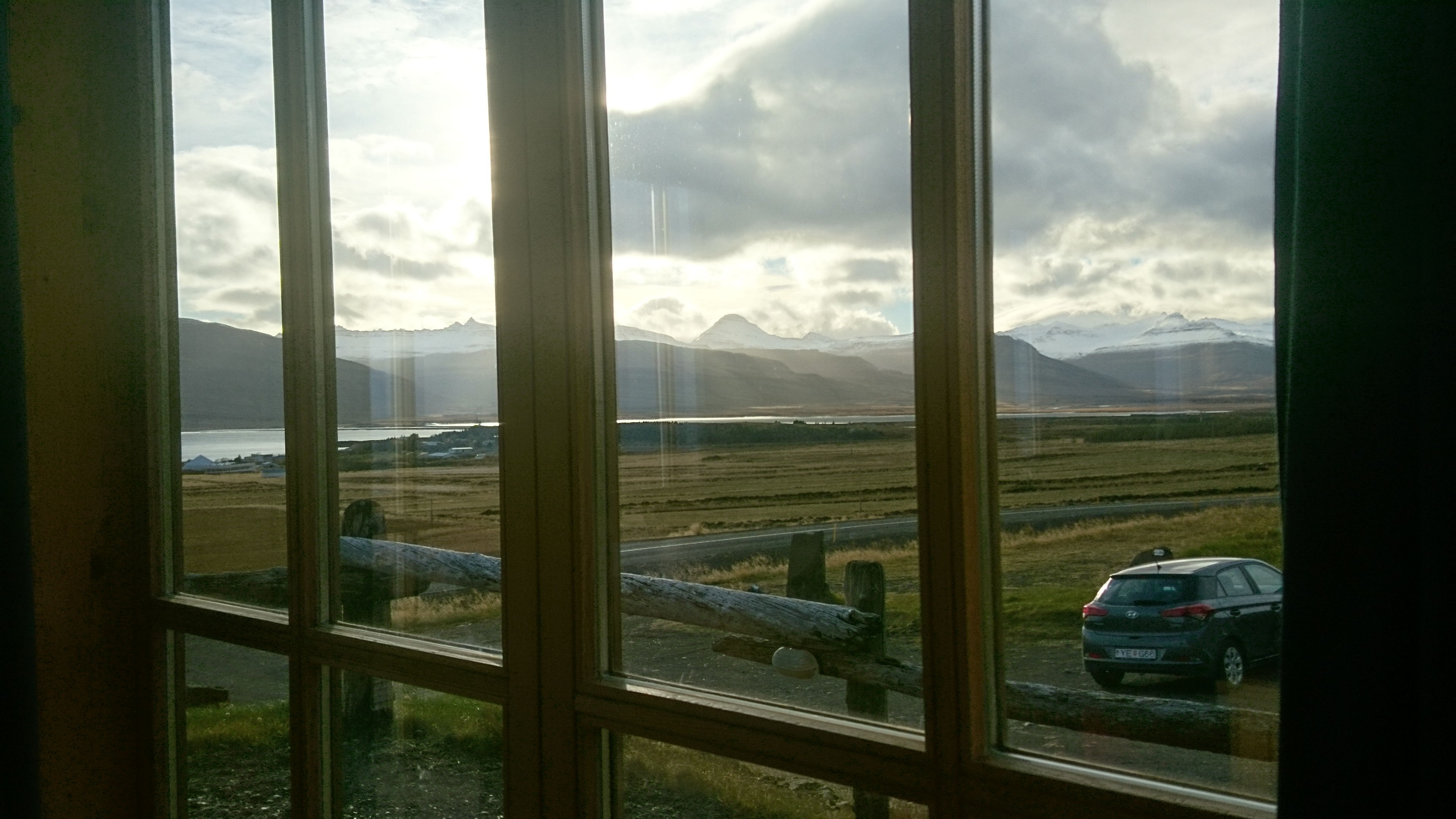 Le gusta el lugar. Le gusta la oronda chica islandesa que lo regenta y la madre a pesar de que no le haya complacido el cordero. Pregunta si tienen habitación libre con vistas al fiordo. La tienen. Se queda a dormir.