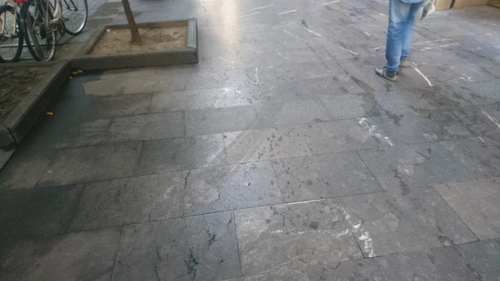 Mientras voy hacia Baluarte a por mi desayuno reparo en el mármol negro donostiarra. Todo el centro de la ciudad está adoquinado con hermosas placas de ese noble material, enormes bloques de mármol negro están colocados en los espigones para proteger muelles, paseos y playas de los embates de ese furioso Cantábrico. Material noble para una ciudad rica.