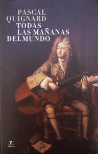 Otra de las obras destacables se escucha cuando Saint Colombe pide a Marais (Gerard Depardieu) que improvise sobre “Las Folies de Spagne”. Estas folías son una serie de variaciones sobre el tema de la folia, compuesta por Marais para su segunda colección de viola. “Une Jeune fillette” es una hermosa melodía de Jean Chardavoine, arreglada por Savall, interpretada por una voz infantil. Fue una de las favoritas de todos los tiempos del Renacimiento y el barroco temprano. Hay una serie de himnos de la Reforma escritos para esta melodía; Scheidt, Hassler, Vulpius, Kugelmann, etc., todos lo usaron. Frescobaldi lo usó bajo el disfraz de «l’Arie di Monicha» para una misa y todo un conjunto de partituras para cembalo. El acompañamiento en la banda sonora es una interpretación nota por nota (o casi) de uno de las Fantasie sobre este tema de Eustache Du Caurroy. Trata sobre el tema de la joven metida a monja a su pesar. El tema melódico era conocido como la monica (la monja) y fue utilizado y glosado por numerosos compositores de los siglos XVI y XVII. Llamada a veces La Nonette, se convierte en el repertorio religioso. Finalmente, la melodía también toma la forma de una coral luterana, Von Gott, ich nicht lassen (Dios no quiero separar). Un tema que atraviesa los estilos, los países de Europa e incluso épocas con versiones del Renacimiento, la era barroca e incluso el período contemporáneo con el compositor holandés Bert Matter