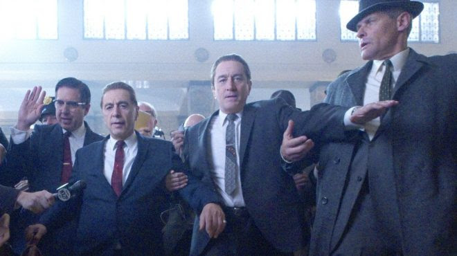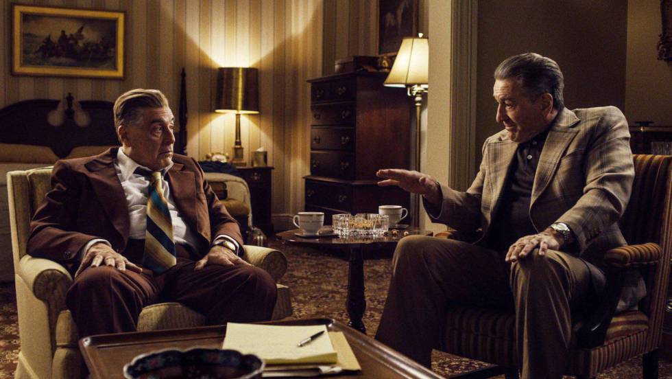 Si hay un director de cine que conozca los entresijos de la mafia ese es Martin Scorsese; el otro podría ser Francis Ford Coppola, y los dos italoamericanos, como los grandes capos mafiosos. Tenía ganas el director de esa obra maestra llamada Taxi driver, por la que no pasa el tiempo, de volver trabajar con su actor fetiche Robert de Niro y sacarlo de esa espiral de comedias irrelevantes y auto paródicas a la que parece últimamente predestinado, y se le presentó la ocasión leyendo el libro Jimmy Hoffa, caso cerrado (el título original es He oído que pintas paredes) de Charles Brand (quien anteriormente se había encargado de las memorias del agente infiltrado Joe Pistone, conocido como Donnie Brasco), confesor de Frank Sheeran que le hizo una importante revelación antes de pasar a mejor vida. ¿Quién es era ese tipo irlandés que combatió en la Segunda Guerra Mundial y tenía muy buena puntería? Un pequeño estafador hijo de un pintor de casas que acabo pintando paredes (en el argot mafioso, liquidando y desparramando materia orgánica de sus víctimas cuando les disparaba a la cabeza) de forma harto profesional.