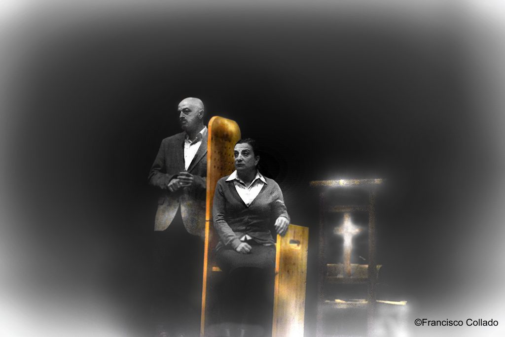 El autor-director opta por redescubrir aquella escenografía espartana. Nos regala, de nuevo, esos personajes solitarios, pero imbricados. Además introduce directamente al espectador, en el primer texto, cuando el personaje de Hombre cuenta como “La única forma de llegar al presente y la muerte, es la ausencia”. La propuesta formal navega entre el existencialismo más atroz, coqueteando con el teatro del absurdo y revitalizando el mito clásico con la presencia de esa diosa políglota y el trágico hado que sobrevuela a los personajes. Un fatum del que es imposible escapar y que, tampoco es posible exponer, para no revelar el elaborado desenlace. Aquí, el autor vuelve a rizar el rizo con un punto de encuentro final para los personajes, demoledor y desolador, como ya hiciera en su anterior obra. Deambulando entre las ruinas de una iglesia-teatro, las presencias (llamémosles así), celebran un ritual de ausencias. Una ceremonia donde la nada, lo irracional o la comicidad nihilista se aposentan en sus ¿vidas?