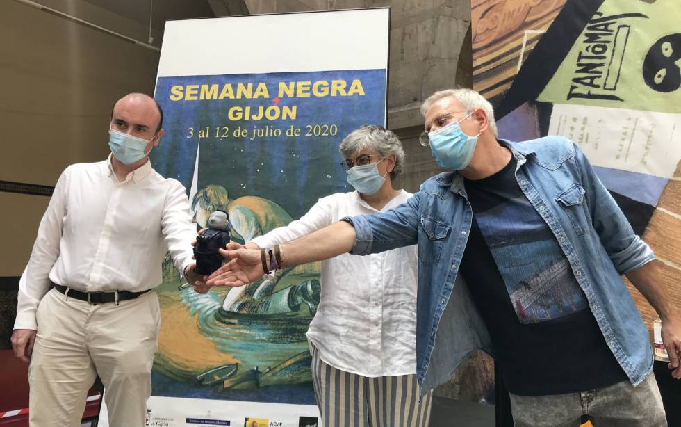 Ángel de la Calle, y todo el equipo de la Semana Negra, ha torcido la muñeca al Covid, pero sin bajar la guardia en ningún momento. No hubo tren negro, porque cada uno cogió el suyo, pero ahí estaba Miguel, como cada año, y la fanfarria tocando Asturias Patria querida, La estaca y el Himno de Riego. Noventa autores frente a los habituales 400 que llenaban con sus charlas las carpas de la Semana Negra. Un máximo de 40 asistentes a las presentaciones frente a los habituales trescientos. Mascarillas y geles hidroalcohólicos en vez de copazos de whisky como el que se tomaba Jorge Semprún en la que iba a ser su última Semana Negra. Autores firmando sus libros tras pantallas transparentes. Literatos negros disfrazados de forajidos. Pocas librerías y ninguna pulpería. Por la pandemia, la Semana Negra es más cultural y menos popular. Pero se hace. Se sigue haciendo en estos momentos en los que escribo estas líneas con un público embozado del que los ponentes de las mesas solo ven sus ojos y por ellos descifran si les ha gustado o aburrido la charla.