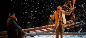 Un árbol desolado, apagado, vencido por el tiempo, señorea una escenografía irreal y ensoñadora de Paco Azorín, iluminada con habilidad por Pedro Yagüe (como también el pathos está iluminado por el director) El conflicto central apenas existe, la sucesión de conflictos circunstanciales trazan el devenir de los personajes. La poesía del absurdo condiciona los diálogos y las interacciones. La corriente subterránea de sensaciones y emociones fluctúa sobre ese aparente “no pasa nada”. La peripecia vital es el nombre del juego.