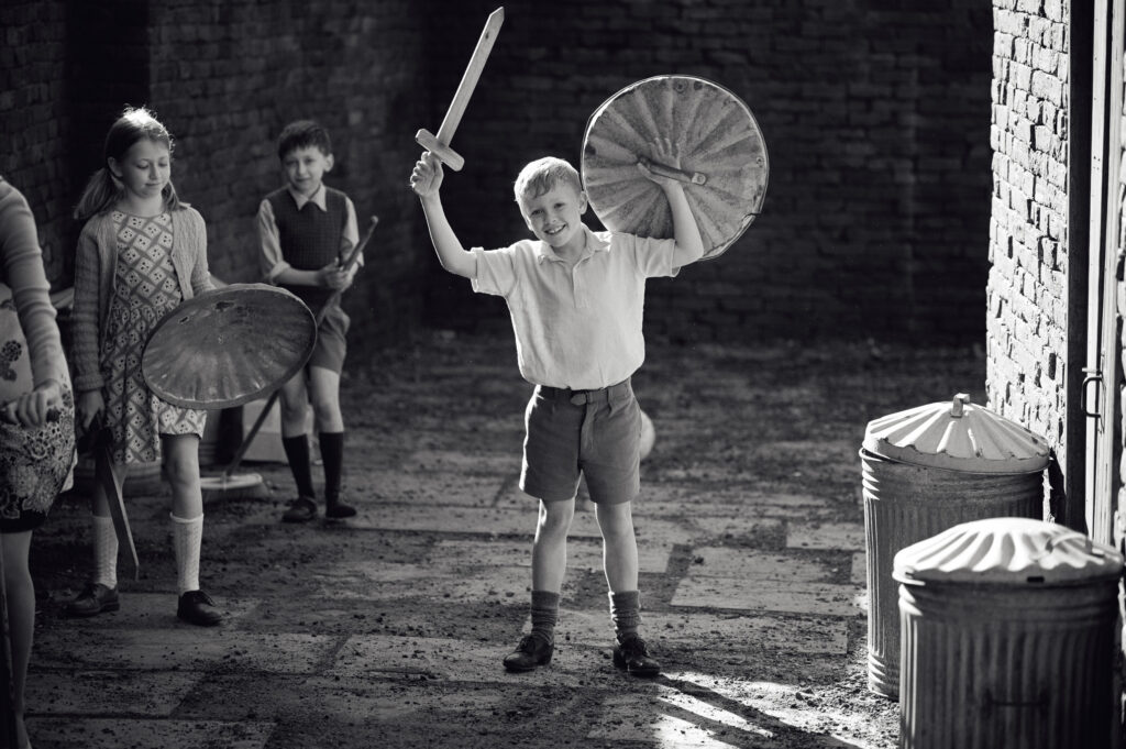 Rodada casi en un único escenario, esa calle que es un microcosmos exportable a toda la ciudad, y en esa modesta casa en la que vive el protagonista infantil en compañía de sus abuelos Granny (una espléndida Judi Dench) y Pop (Ciarán Hinds), en un hermoso blanco y negro y con un aura de musical sin serlo del todo (aunque la música de Van Morrison funciona como recurso para situar el film en su contexto cronológico, así como las películas que la familia al completo ve, en color, en el cine de barrio), puede que el espectador tenga una cierta reticencia a entrar en una historia que suena a impostada por el tratamiento que da Kenneth Branagh a sus imágenes y la resolución de sus secuencias. Si el espectador consigue entrar en el film desde la óptica del niño narrador y protagonista absoluto del mismo, Buddy (Jude Hill), trasunto del propio director, y verlo con ojos infantiles, que todo lo magnifican, Belfast puede ser una gran película. Solo así se justifica el aspecto glamuroso de la madre Ma (la bellísima modelo irlandesa Caitriona Balfe) y el padre Pa (Jaime Doman, con más aspecto de ejecutivo que de obrero entrampado por las deudas), versiones idealizadas por la mente infantil, o esa escena, a lo Solo ante el peligro, cuya banda sonora acompaña para subrayarla, en la que Pa desarma con una pedrada al activista protestante que lo apunta con una pistola ante la mirada de admiración de su hijo de diez años para el que es un héroe.
