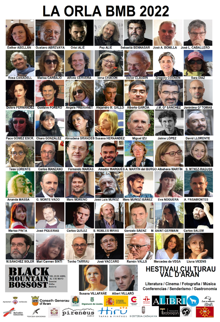 Ya está en marcha la sexta edición del festival cultural Black Mountain Bossòst que se celebrará este año entre los días 25 de abril y 3 de mayo en las localidades de Bossòst y Vielha, Val d’Aran, y terminará en Andorra la Vella, una semana de actividades culturales que incluye las relacionadas con la literatura (negra, histórica, rural y erótica), las conferencias (el yihadismo, el papel de la mujer en la historia y en la literatura), debates (La literatura del mal), el espionaje (Los espías ya no vienen del frío), el periodismo de sucesos, la dramática situación de Ucrania y el panorama de las pequeñas editoriales, entre otros temas.