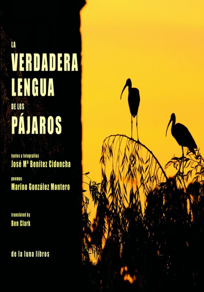 Nos sorprende “de la luna libros” con un libro-paisaje, una suerte de cuaderno de campo poético (Marino González Montero), donde junto a las espléndidas fotografías (José María Benítez Cidoncha) encontramos retazos naturalistas en bilingüe concepto, porque parte de los textos se presentan también en inglés de la mano de Ben Clark. Sorprende (digo) la calidad editorial del producto, la soberbia presentación visual y el difícil equilibro entre los retazos poéticos, la plasticidad señera de las imágenes y su acompañamiento con datos de corte naturalista-ecológico. El aspecto poético corre de la mano de Marino González Montero que no traiciona sus referencias helénicas (Las garzas de ojos glaucos) o nos vuelve a colocar en el punto de mira de Tiresias o nos retorna a lo primigenio de su pluma (digno vástago de Afrodita), a las originarias fuentes de las que beben los literatos (y asomas tras Eneas, majestuoso y solemne) En este poema titulado “Calamón”, Marino González introduce hasta siete referencias clásicas, inspiradas en una impresionante fotografía. Un primerísimo plano, una paleta en azul y rojo, un intenso carmesí desde los ojos del ave que adivina; sin duda; la belleza del verbo que reflejará ese instante supremo que recoge el objetivo límpido, la apertura exacta, la luz precisa, la velocidad certera. Porque si algo tiene la fotografía de aves (y naturaleza en general) es su tremenda dificultad. Acechar en los hides a la espera del instante anhelado, buscar la combinación adecuada de velocidad de obturación (que condiciona en estos casos) con la apertura diafragmática. Y un elevado porcentaje de “suerte”, que nace de las horas dedicadas a estos menesteres.
