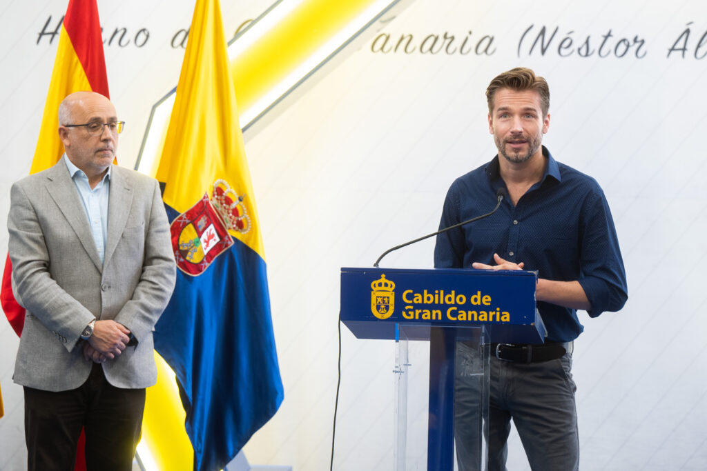 El director de Animayo, Damián Perea atiende a las palabras del presidente del Cabildo de Gran Cañaría, Antonio Morales.