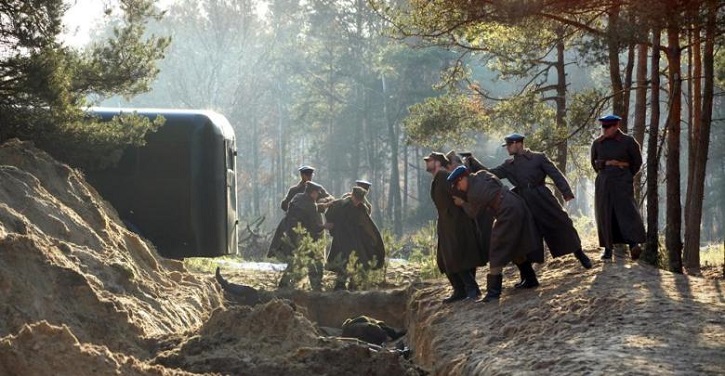 Escenas como la del niño que se compadece de un perro callejero, están llenas de humanidad y esperanza frente a la barbarie. Una barbarie que siguió asolando la vida de los ciudadanos en la posguerra, cuando los opresores hacían cualquier cosa para evitar que la verdad saliera a la luz. Desde impedir cualquier comentario de los familiares de los masacrados, hasta detener y hacer desaparecer a quien ponía en la lápida la fecha de 1940. Katyn es un puzzle coral, una historia de búsqueda y redención. La historia de una terrible mentira. Algunos personajes se quedan suspendidos en el tiempo, eligen vivir con el engaño, otra se arriesga a ser castigada por indicar en la lápida la fecha exacta del asesinato de su hermano. El epílogo descoloca al espectador por su crudeza, por el coste humano del terror, por la barbarie industrial de las ideologías extremas. Si hubiera que ponerle un pero a la película es la ausencia absoluta de población judía. En aquellos momentos, el 10 por ciento de la población de Polonia era judía y 450 de los oficiales polacos asesinados en Katyn, también lo eran, como Baruch Steinberg, rabino principal del ejército polaco. La banda sonora remarca la tristeza de los acontecimientos desde la profusión de cuerdas en los títulos. La melodía adopta un concepto casi fúnebre y angustioso o tiene instantes de metales (con tintes sacros). Para los germanos hay un fraseado repetitivo o un villancico a capella remite a la esperanza. Soberbia partitura de Krzysztof Penderecki.