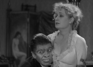 El juego actoral es extraordinario y la anécdota no se limita a presentarnos una historia de terror al uso. La dualidad de todo ser humano es la baza que esta en juego. Jekyll nos envía el mensaje para no ignorar esa zona de sombras en la que todos también habitamos. Ignorarla es encerrarla y no analizarla, lo cual lleva a la represión. Sobre el film planea una filosofía nietzscheana donde lo apolíneo y los instintos más primitivos habitan dentro de la misma cáscara. Jekyll se encuentra encorsetado por las normas sociales, por el orden y la racionalidad, por el equilibrio. Mr. Hyde es la cara oculta de la moneda. Una bestia sin empatía, embriagada por su instinto, sin los filtros sociales, sin freno. El sendero directo hacia lo dionisíaco. El argumento es un absoluto revulsivo para los bienpensantes y las buenas costumbres, porque Hyde representa las cosas tal y como son (sin el disfraz de la civilización), dice la verdad desnuda y sin ambages. A Ivy (Miriam Hopkins) lo que más le asusta del alter ego es que lee los pensamientos. Los pequeños detalles son tan importantes como el mensaje primordial. No en vano los rasgos del engendro que surge del interior de Jekyll cuando consume la poción y se libera de convencionalismos es el reflejo de nuestros ancestros. El doble es un personaje simiesco, con rasgos atávicos. Evolucionistas. El mensaje darwiniano sobrevuela los actos instintivos de Mr. Hyde. Un ser civilizado liberado de toda atadura social e histórica. El director juega con encadenados diagonales, mostrando dos actos al mismo tiempo, juega con metáforas visuales como la inmensa biblioteca (inabarcable) que nos comunica la imposibilidad de adquirir todos los conocimientos. El erotismo es elegante al tiempo que instintivo. Como muestra baste la secuencia donde una Miriam Hopkins de altísimo voltaje deja balancear su pierna desnuda (como el resto de cuerpo) sobre la cama. Travellings rapidísimos, superposiciones, cortinillas. El despliegue visual es apabullante y está perfectamente imbricado en el pathos, para concluir en esa escena (fotograma a fotograma) en la que el cadáver de Hyde retorna a su originario Jekyll ante la mirada asombrada de los policías. Primera adaptación sonora del clásico de Stevenson fue proyectada en el Festival de Venecia de 1932. Pese a sus reminescencias de “silentmovie”, lo avanzado de la planificación y la utilización de la cámara como recurso narrativo la han convertido en una referencia impecable sobre el mito del Doble. Sobre la oscuridad que habita en nuestra luz. Las influencias de este film podrán rastrearse después en otras obras del autor como Ámame esta noche (Love Me Tonight). 1932) o La reina Cristina de Suecia (Queen Christina. 1933). Robert Mamoulian consigue misturar un cuento visual de terror victoriano con el análisis certero y la disección de la dualidad humana, siempre con un espejo-metáfora como protagonista. Y lo narra con una modernidad envidiable, con una extraordinaria puesta en escena, con un envidiable ritmo. Con sabiduría fílmica integra las teorías freudianas dentro de un aparataje que bebe directamente de la imaginería del Drácula (Drácula.1931) de Tod Browning. Miriam Hopkins esta soberbia en su personaje de cantante cockney exhibicionista y Fedrich March borda un ancestro unicejo con uno de los mejores maquillajes de la época.