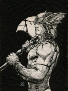 El personaje de Conan el Bárbaro, significó para Barry Winsord-Smith, la entrada en el universo de los grandes, a través del otro universo paralelo del autor de las novelas. De esta época nacen de la fértil pluma del británico joyas como Red Nails (Uñas Rojas) o la mítica: La Torre del Elefante. Epítome de la creación de un cosmos personal, que presentaba al completo la técnica que le convertirá en uno de los mejores ilustradores del cómic.
