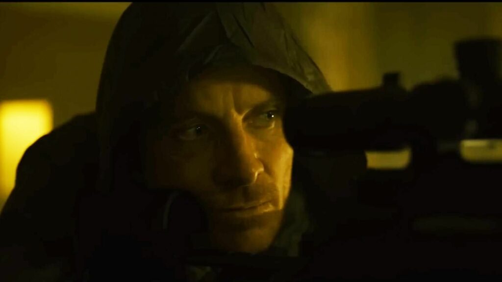 El asesino, con un arranque algo crispante, gana según avanza y se acelera el ritmo gracias a un montaje eficaz. El atroz protagonista, para cometer sus asesinatos, repite antes de perpetrar sus crímenes el mantra “preparación, atención al detalle, repetición, repetición, repetición…”. y “la empatía es una señal de debilidad”. Michael Fassbender borda en esta película oscura, como todas las de David Fincher, su personaje gélido e inhumano, con el que resulta imposible empatizar a no ser que se sea un psicópata, que hace del asesinato su modus vivendi y no una de las bellas artes y carece de toda ética (mata hombres, mujeres y hasta podría liquidar niños sin pestañear cuando centra a uno de ellos en el visor de su rifle de precisión), las que sí tenía el silencioso ejecutor interpretado por Alain Delon en el film de Melville y fueron su perdición.