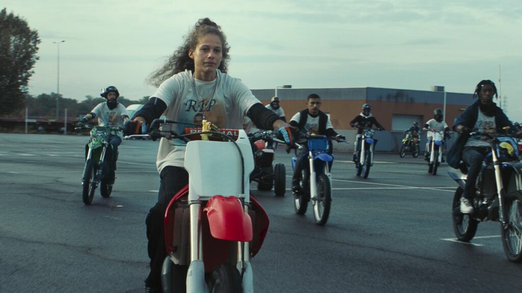 La opera prima de la directora Lola Quivoron (París, 1989) quiere ser tan testosterónica como su enloquecida e inestable protagonista femenina que jamás ríe, mantiene el ceño fruncido y se comunica con monosílabos o golpes. Abundan los primeros planos, los diálogos a gritos y una cámara que se mueve enloquecida de un lado a otro para retratar ese mundo visceral al que el humo de los tubos de escape les parece perfume y el petardeo de los motores música celestial. Pero uno no empatiza con los miembros de esa banda mestiza formada por hijos de emigrantes africanos, árabes o antillanos, como la propia actriz protagonista de físico felino que es quien finalmente destaca en una película irregular de raigambre social pero cuyo mensaje se me escapa. Tampoco funciona la película cuando se decanta hacia el género negro y se centra en esos pequeños robos, o cuando Julia, que acaba liderando la banda después de sufrir una brutal paliza a manos de uno de sus compinches, planea el asalto a una especie de furgón blindado para hacerse con las motos que transporta, pésimamente filmado.