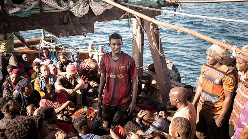 Tiene aires su película, rodada casi toda en África y con actores nativos, de relato de aventuras, hasta en su aspecto formal con esa fotografía tan bella y brillante. Dos jóvenes senegaleses, Seydou (Seydou Sarr) y su primo Moussa (Moustapha Fall), sueñan con emigra a Europa porque su país se les queda pequeño: quieren ocupar un lugar en la esfera musical. Con el dinero que ahorran con su trabajo como peones, se costean un larguísimo viaje por todo el centro de África que los deja a las puertas del Sahara. A partir de allí, muerte y desolación, porque el desierto se va cobrando su tributo entre el grupo de viajeros clandestinos. Pero lo peor llega cuando llegan a Libia. Allí las mafias torturan hasta la muerte para conseguir el número de teléfono de sus familiares (y los que no lo tienen pasan a mejor vida) y los que sobreviven son vendidos como esclavos. El protagonista sobrevive a todo ese trayecto infernal, pero deberá superar una última prueba: conducir una barcaza por el Mediterráneo con un grupo de emigrantes a su cuidado sin tener ninguna experiencia en ello.