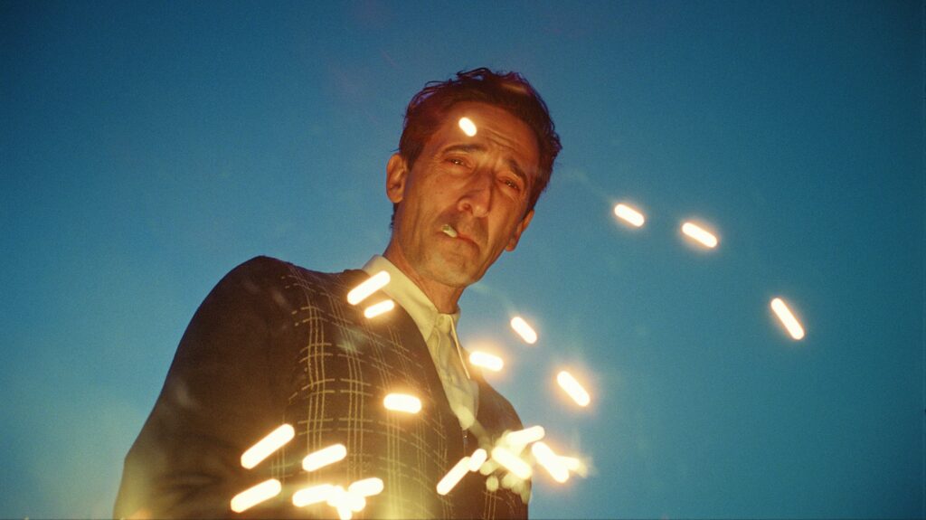 La película es larga, pero no lo parece, vuela ante los ojos del espectador. Brady Corbet, que resucita después de sesenta años en desuso la VistaVisión con efectos visuales sorprendentes, consigue que empaticemos desde el minuto cero con su historia y su protagonista, rueda muy bien metiendo al espectador en escena —ese baile turbio y triangular entre Attila (Alessandro Nivola), el amigo que lo acoge y lo aloja en la trastienda de su almacén de muebles a su llegada, y su esposa (Emma Laird) que remite a la promiscuidad sexual de las películas de Bernardo Bertolucci de Novecento o Soñadores—, crea atmósferas, a veces malsanas —la fiesta en las canteras de Carrara, neorrealismo italiano trufado con onirismo felliniano—, saca un partido extraordinario a los efectos sonoros, sencillamente extraordinarios, mantiene el pulso narrativo durante esas tres horas de proyección aunque en la segunda parte baje el tono, cuando arquitecto y mecenas viajan a Italia para seleccionar un bloque de mármol blanco y meta con fórceps allí una de las escenas más controvertidas de la película, quizá innecesaria por su subrayado.