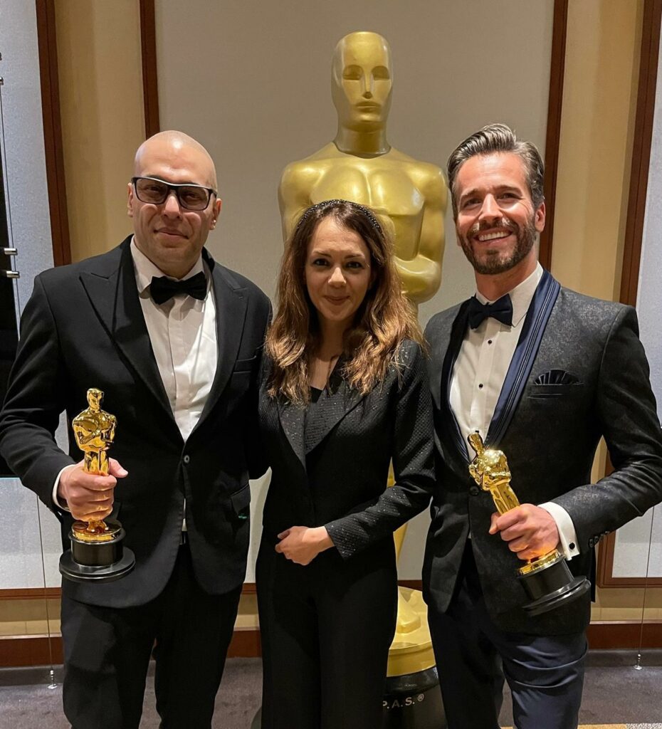 Damián Perea, productor y director de Animayo, vivió la victoria junto a Hossein Molayemi y Shirin Sohani, directores iraníes del cortometraje ganador In the Shadow of the Cypress.