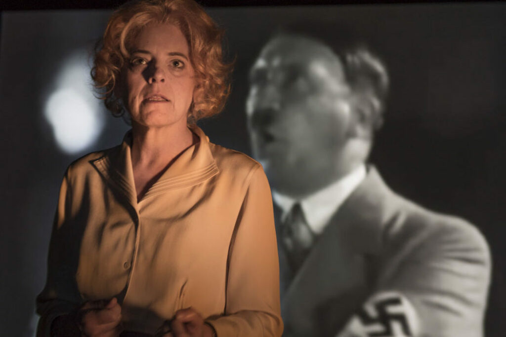 Junto a imágenes de archivo, en la que se ve a la musa del nazismo confraternizando con Adolf Hitler, Josep Goebbels y Hermann Göring, entre otros, asistimos a algunas de las entrevistas que concedió a la televisión pública alemana cuando se la rehabilitó y en donde se defiende con toda clase de argumentos sobre su apoyo explícito al régimen nazi y su fidelidad al führer. Define a los nazis siempre como socialistas nacionales, afirma una y otra vez que a Hitler lo apoyaba el noventa por ciento de los alemanes y que ella, pese a su cercanía a los poderes del Reich, no sabía nada de sus atrocidades hasta muchos después, cuando Alemania perdió la guerra. Confrontada con una mujer de su edad que vivió ese periodo y la critica por su apoyo explícito al nacionalsocialismo, la cineasta estalla de rabia y rebate con argumentos su posición y obtiene el aplauso unánime del público asistente. Hitler no se ha volado la tapa de los sesos en su búnker de Berlín, sigue muy vivo en Alemania, ahí están sus herederos de Alternativa por Alemania. Leni Riefenstahl también explota, da muestras de su carácter virulento, en una de las entrevistas que concede en su casa, detiene la grabación con malos modales, se levanta e invita a los periodistas a que se vayan y exige que borren todo lo grabado: le molesta que hablen de su pasado, intenta borrarlo sin éxito fundamentalmente porque no se arrepiente. En otro de los momentos, cuando el periodista le pregunta qué sintió cuando oyó por la radio que Hitler se había suicidado, confiesa que se hundió.