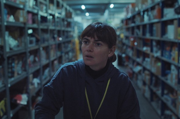 Laura Carreira, en un ejercicio de sutileza que se sirve de la rutina (las secuencias en el almacén, reiterativas, en las que Aurora va escaneando productos de las estanterías y colocándolos en cestos de plástico para su envío no son en nada gratuitas) utiliza la figura de su protagonista para hacer una demoledora crítica a un moderno sistema de explotación que va de la mano de la digitalización. Aurora se levanta casi de noche, va en el coche de su compatriota Vera (Inés Vaz), con la que comparte gasolina, al almacén, come allí un triste condumio con sus compañeros de trabajo y regresa a su piso compartido en un día a día sin el más mínimo aliciente.