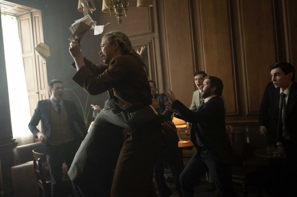Hay secuencias impagables como el asalto de la protagonista, acompañada de Walter (Patrick Martins), a su propia residencia nobiliaria para hacerse con la cubertería de plata, y el padre (Simon Coury), apuntando con una escopeta de caza a su hija creyendo que se trata de un intruso que ha entrado a robar; la irrupción de Rose Dugdale y otra compañera disfrazadas de hombres en un exclusivo y rancio club masculino; el allanamiento de la casa palacio de Sir Alfred Belt (John Kavanagh), a quien agreden y roban sus obras de arte, y las incendiarias proclamas acusatorias contra sus dueños, especialmente a la maniatada Lady Beit (Andrea Irvine), de la aristócrata convertida en revolucionaria; las dispares reacciones de la madre (Carrie Crowley) de la activista ante el cuadro de una pinacoteca en la que esta, casi una caricatura de la flema británica, se fija en los detalles de la vajilla del lienzo mientras su hija, Rose Dugdale, lo hace en la sirvienta negra que la lustra, dos formas opuestas de observar el mundo: la una clasista, la otra, solidaria.