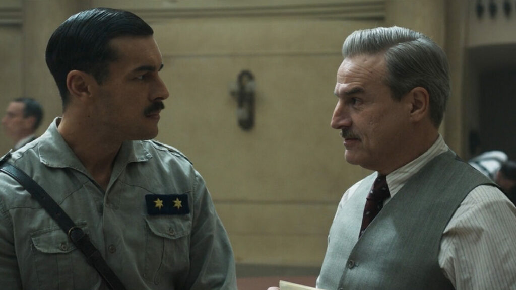 Manuel Gómez Pereira, el maestro de ceremonias de esta cena descacharrante, es un director bien dotado para la comedia (Boca a boca, Entre las piernas, El amor perjudica seriamente la salud) y eso se nota en los primeros tres cuartos de hora de la película, en la preparación de esa cena precipitada que el teniente franquista Medina (Mario Casas) le exige al maître del Hotel Palace Juan (un excelente Alberto Sanjuan), homosexual discreto de derechas que acaba asumiendo que no tiene cabida en esa nueva España, pero decae precisamente en su momento álgido, la cena servida cuando el Caudillo, su mujer y la corte de generales golpistas se sientan a las mesas a disfrutar de ese ágape cocinado por la anarquista Juana (Elvira Minguez), su hijo Ángel (Óscar Lasarte) y un elenco de cocineros comunistas que se plantean envenenar la comida con matarratas. La comicidad decae en ese último tramo de un film que, hasta entonces, parecía bien engrasado gracias a sus intérpretes, entre ellos un Asier Etxendía en el papel del falangista Alonso, que se peina como José Antonio y echa los tejos a toda hembra que se menee a su alrededor, entre ellas Luchi (Eva Ugarte), la mujer del teniente, y un Antonio Resines, que tiene un corto papel como el cocinero Antón al que le pierde no tener la boca cerrada.